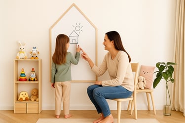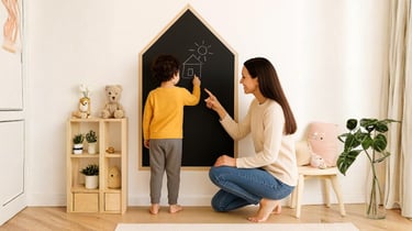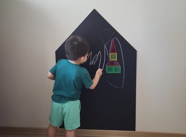 SIZE: 24 × 46 inches (≈ 61 × 117 cm) — a generous house silhouette that turns any wall into a creative space for drawing, playing, and learning.